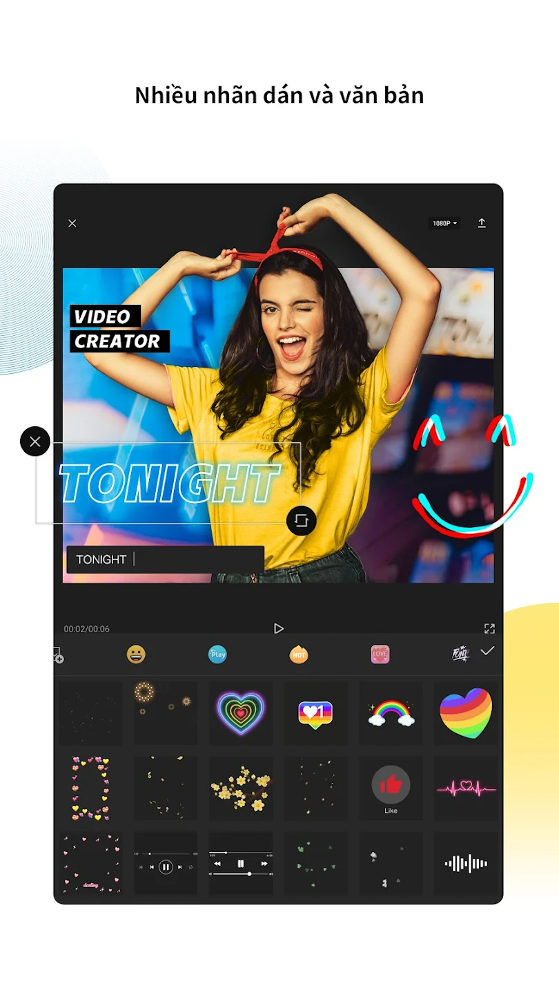 Thêm hiệu ứng, nhạc, văn bản hoặc bộ lọc theo ý thích.