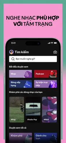 Tìm kiếm nghệ sĩ, bài hát hoặc chủ đề bạn yêu thích.